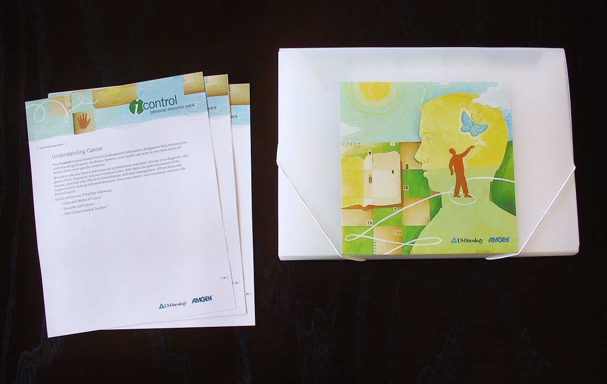Amgen partnered with US Oncology to produce the iControl Personal Resource Pack, a self contained kit with common documents for personalization such as calendars, treatment plans, doctor information, and medical history. As part of the team I contributed designs for the logo and templates, did file production and interfaced with the illustrator.